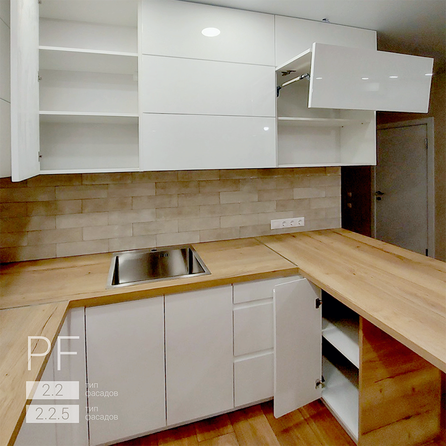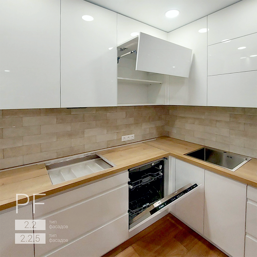тип фасадов 2.2 и 2.2.5 на основе МДФ крашеные, высокий глянец. |