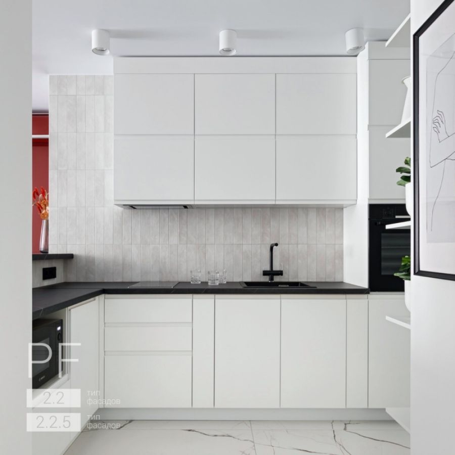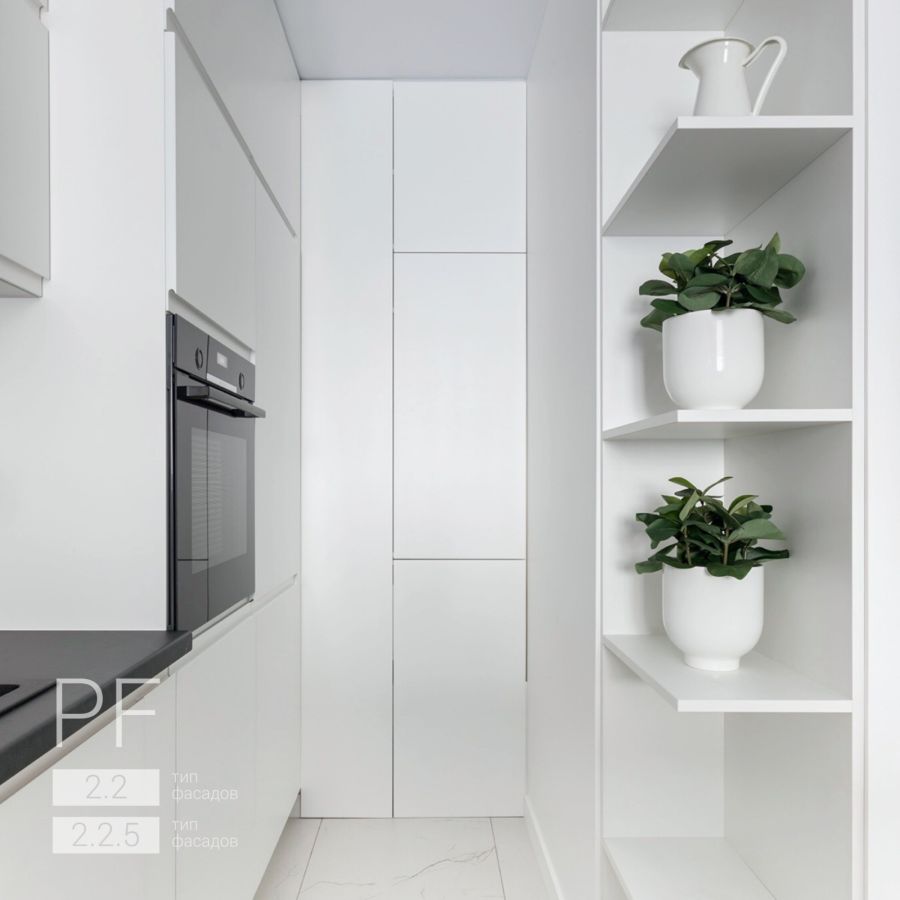 тип фасадов 2.2.5 и 2.2 на основе МДФ – матовая покраска, цвет Белый |