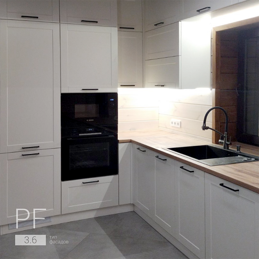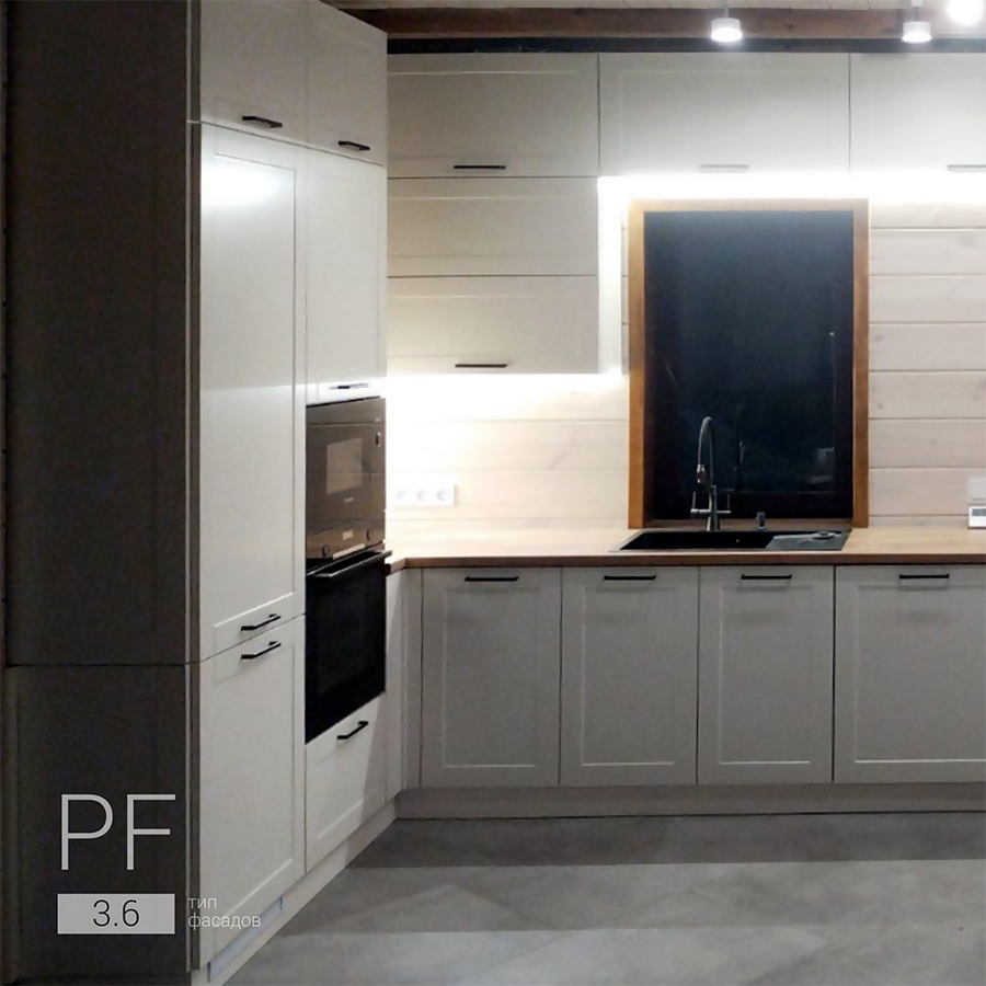Помещения с двумя оконными проемами имеют свои особенности. В нашем проекте высота потолка позволила разместить дополнительную зону хранения над окнами вдоль всей стены, подоконник мы объединили в рабочую поверхность со столешницей и мойку расположили у окна. Кухня п-образная, по одной из сторон разместилась техника в шкафах-колоннах, по другой вытяжка. Получилась комфортная, просторная, светлая кухня.