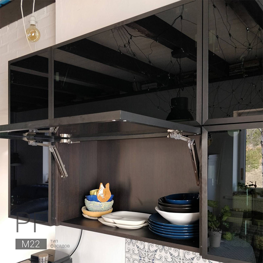 верх – алюминиевые фасады Z-1, цвет Черный браш, вставка – стекло Дарк Грей. |