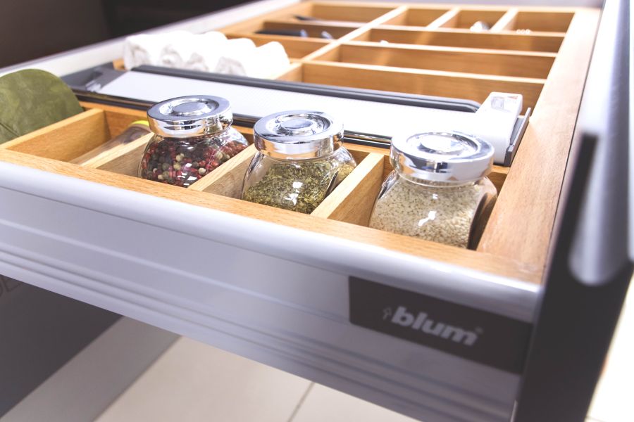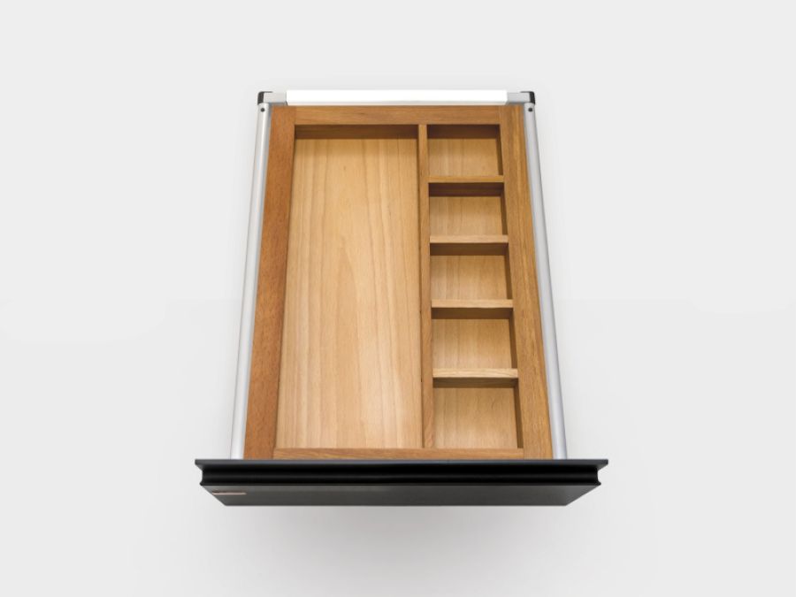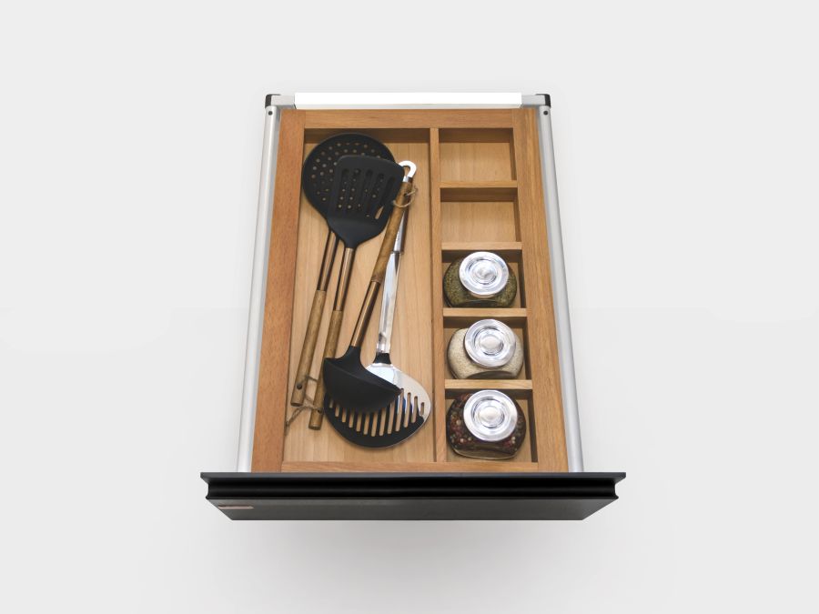 - Лотки для столовых приборов и кухонных принадлежностей из массива бука разработаны по принципу модульных делителей