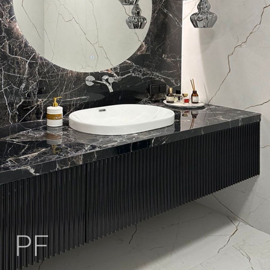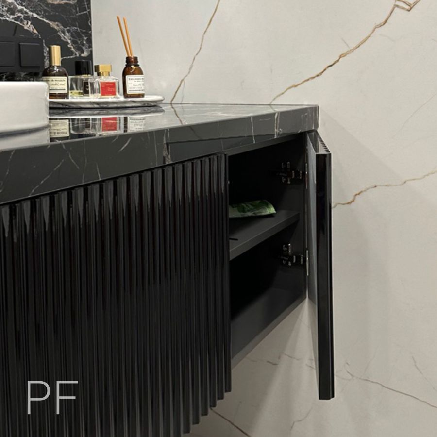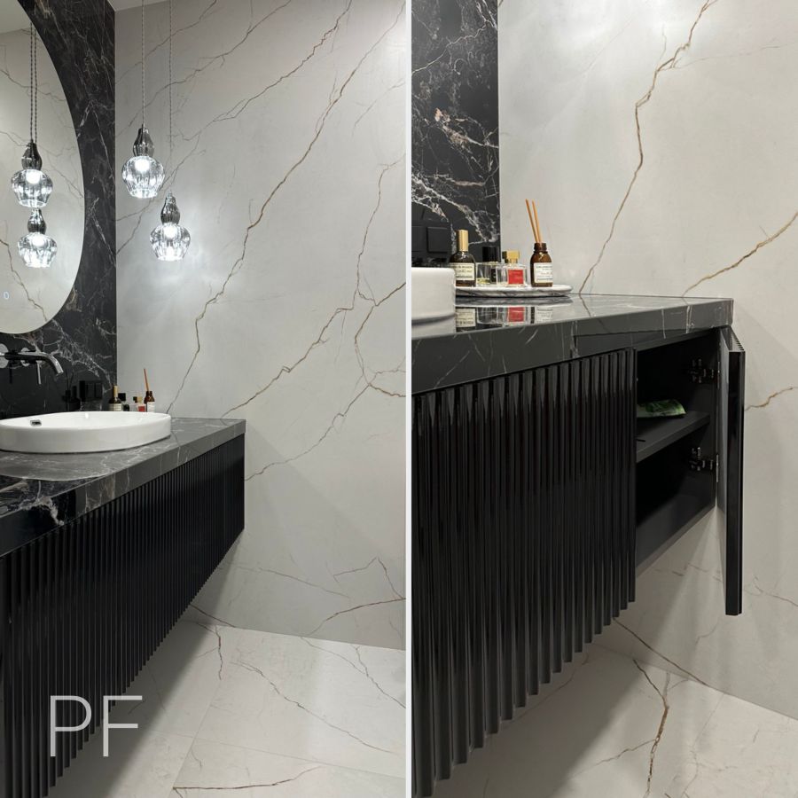 Черная тумба в санузел. Стильно, ярко, современно. Казалось бы, черная мебель, но результат превзошёл все ожидания.