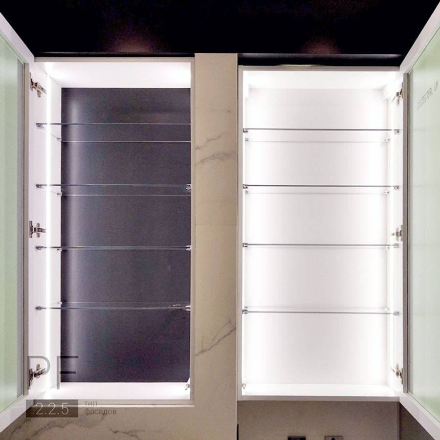 алюминиевые фасады – Z12, наполнение - зеркало с пескоструем, врезная светодиодная подсветка |