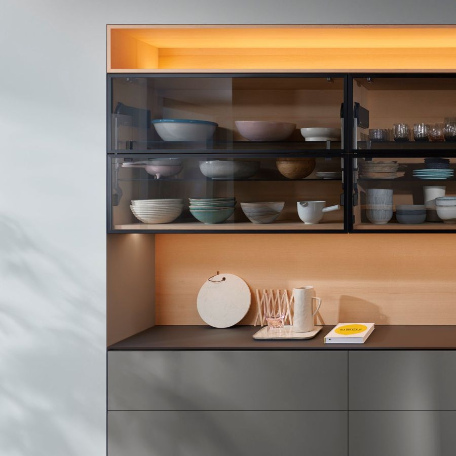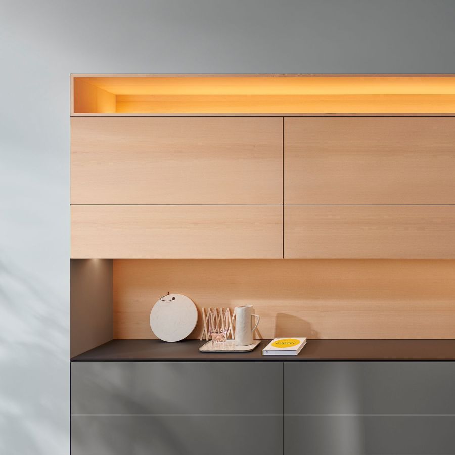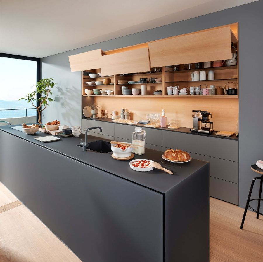 AVENTOS HF | Складной подъемный механизм AVENTOS HF идеально подходит для высоких и средних по высоте верхних шкафов. Даже большие фасады легко поднимаются и предоставляют достаточно свободного пространства над головой владельца мебели.