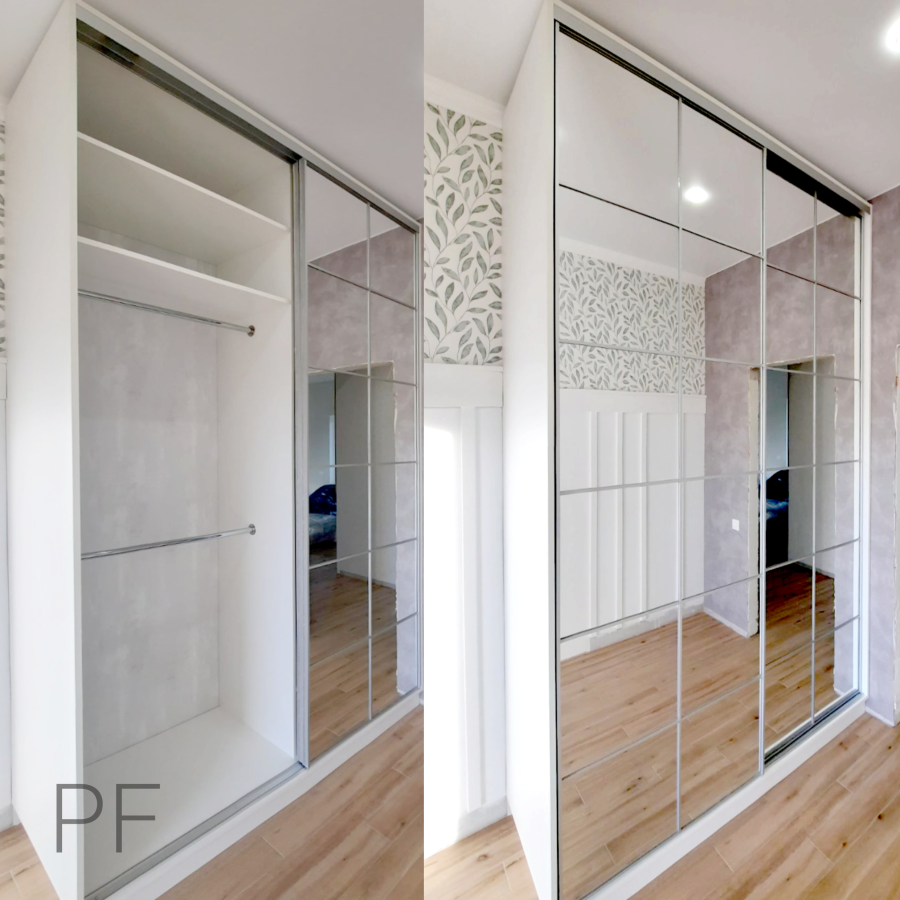 | Двери для шкафа-купе | Pan Fasad ТМ | Профиль Modus MS 163, цвет Серебро; заполнение – зеркало, цвет Серебро. |