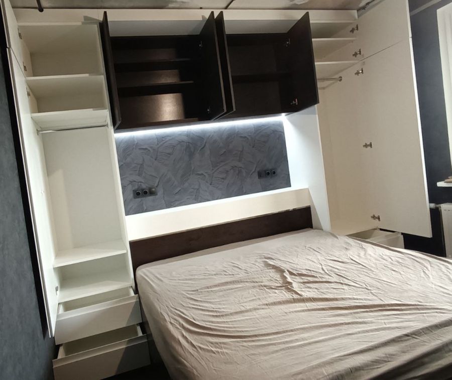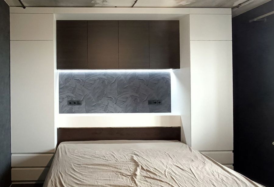 Идеально подходит для небольших спален, где важно рационально использовать место; квартир-студий и современных интерьеров в стиле минимализм, модерн, сканди. Изготовлено компанией Пан Фасад по индивидуальным размерам.