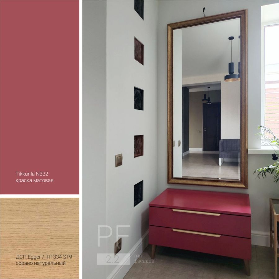 Тип фасадов 2.2, крашеный МДФ, цвет по палитре Tikkurila N332. |