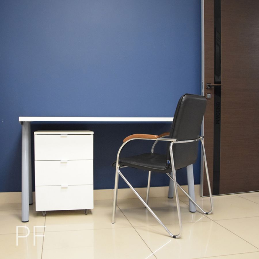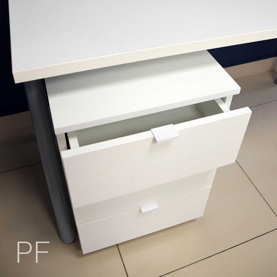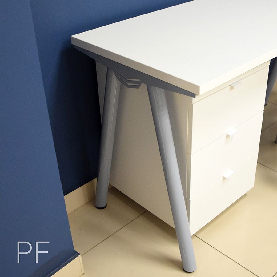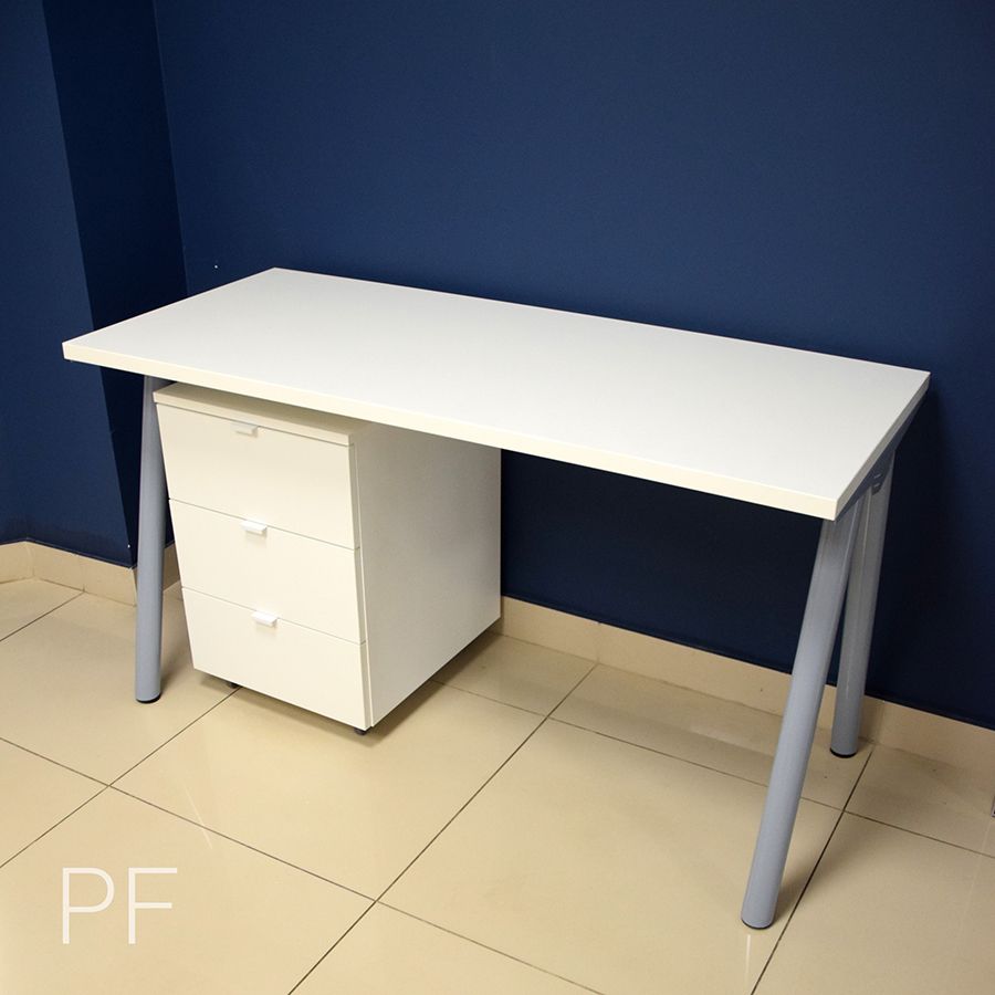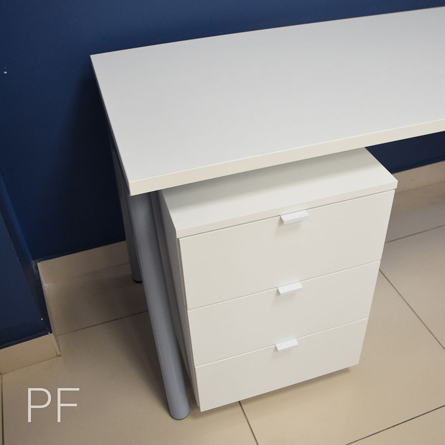 Письменный стол из лДСП с подкатной тумбой. Лаконичный дизайн, идеально выверенные пропорции, максимально удобные для пользователя габариты, опоры оригинальной формы и идеально белый премиальный декор лДСП позволяют использовать эту модель стола для создания комфортного рабочего пространства в кабинете, детской, гостиной или офисе.